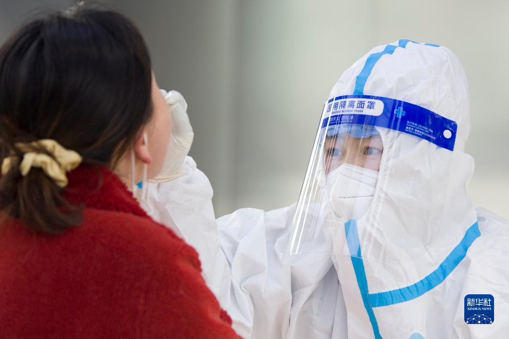 3月21日,居民在长春市一处核酸检测点接受核酸采样。