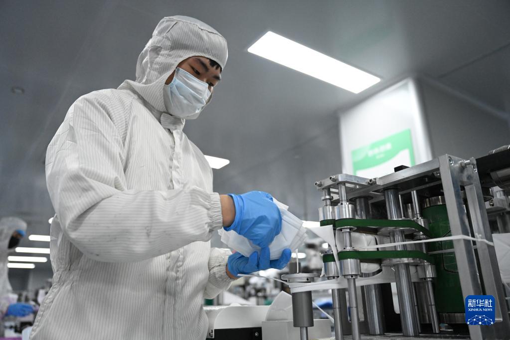 3月21日,工人在泉州晋江市一家口罩生产企业作业。