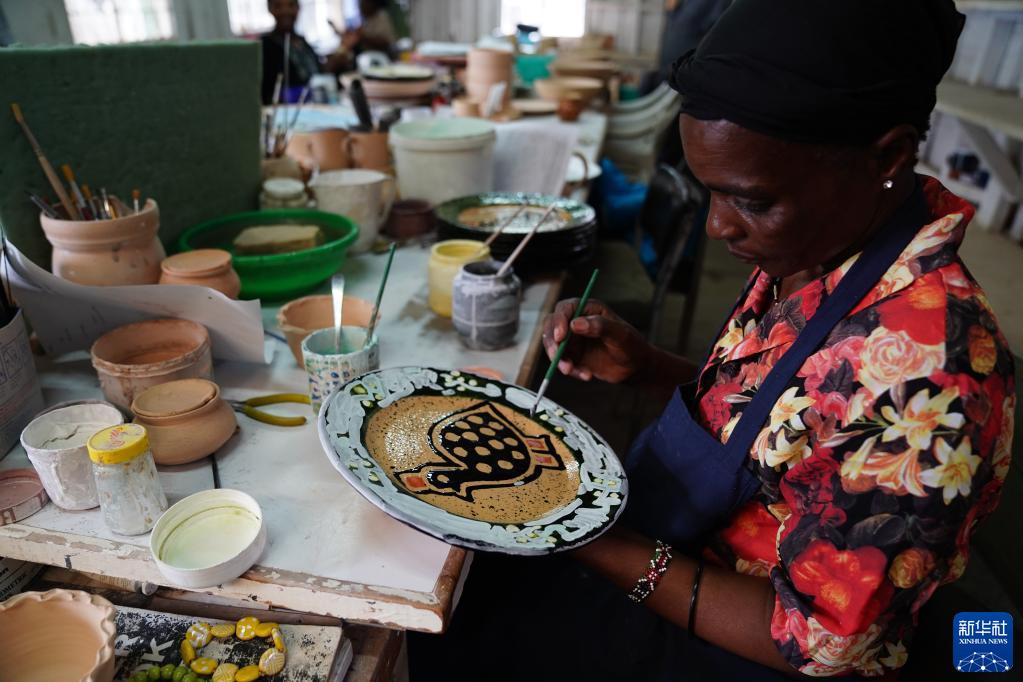 3月21日,女员工在肯尼亚内罗毕Kazuri手工作坊工作。