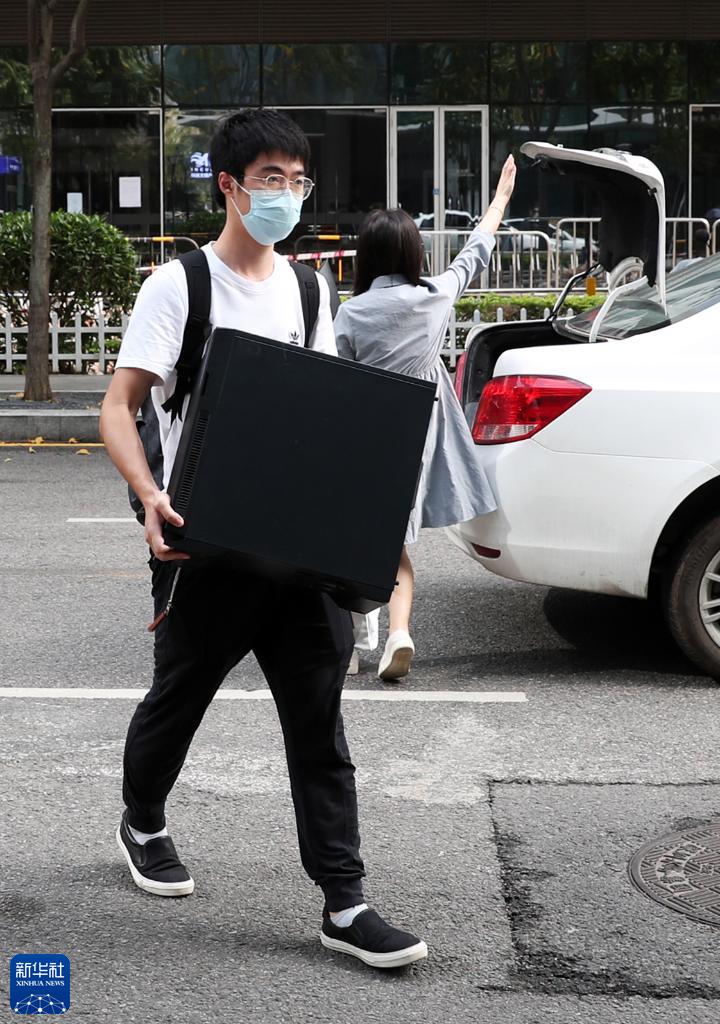 3月21日,一名年轻人搬电脑回深圳湾创业广场上班。