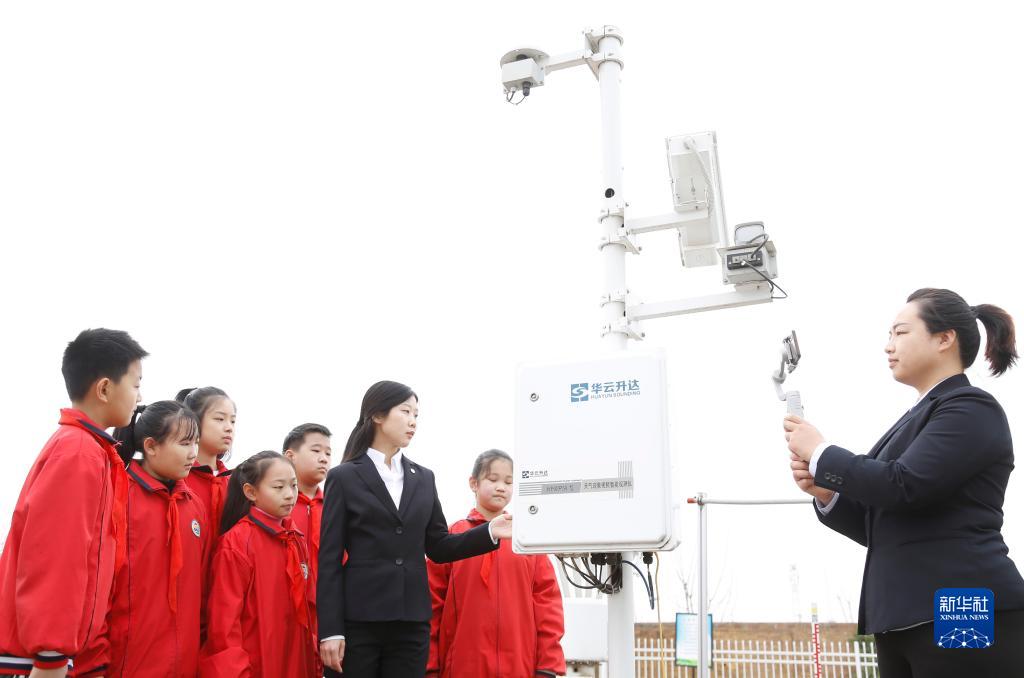 3月22日,河北省邢台市南和区气象局工作人员通过直播为中小学生普及气象知识。