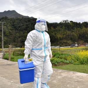 近日,为落实疫情防控要求,湖南省宁乡市黄材中心卫生院组织医务人员,上门为居家隔离人员及家属进行核酸采样。