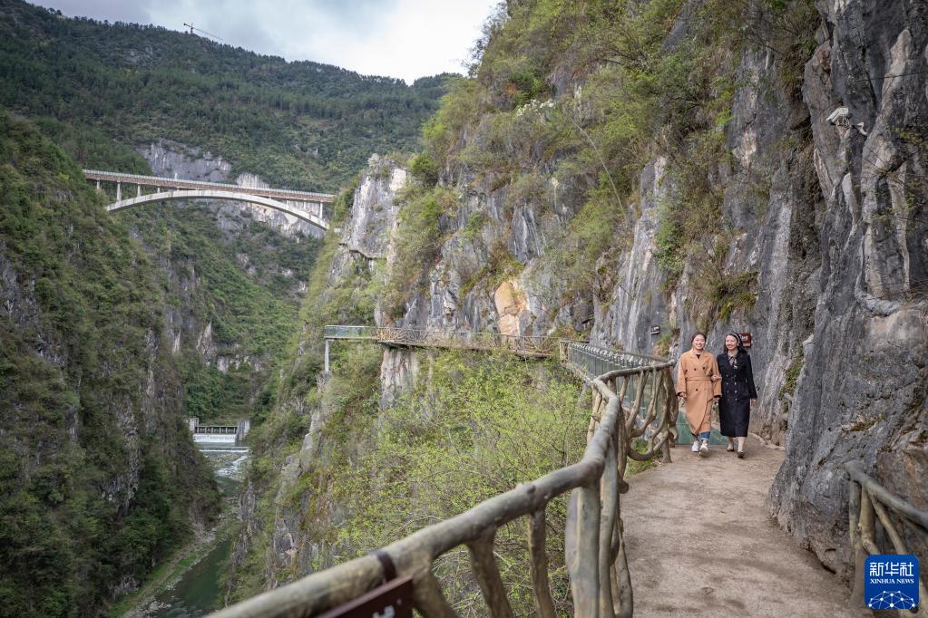 3月22日,游客在重庆市黔江区城市大峡谷景区内参观游玩。