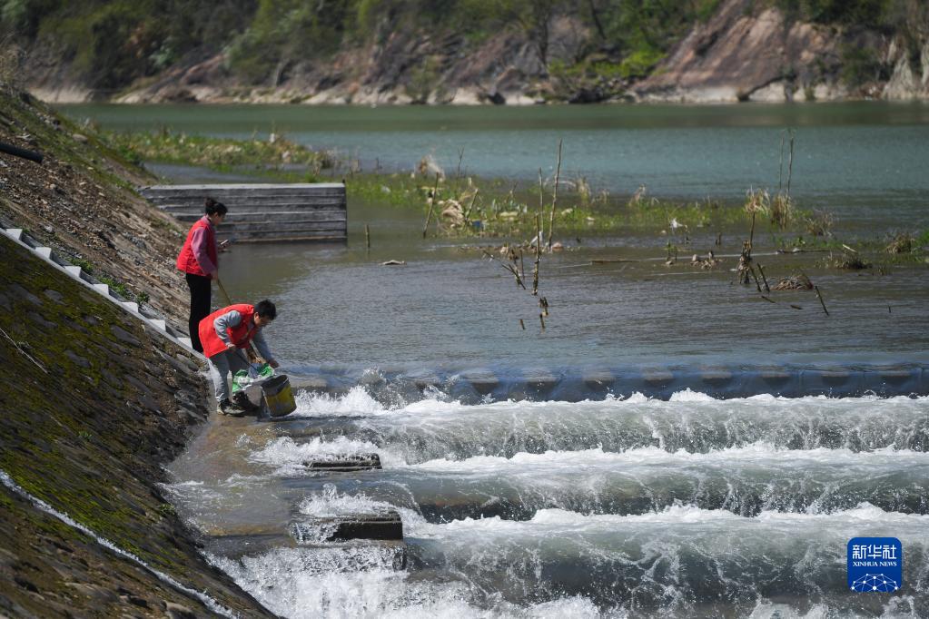 3月24日,党员志愿者在湖源乡壶源溪梅州坝清理沿岸垃圾,保持水域清洁。