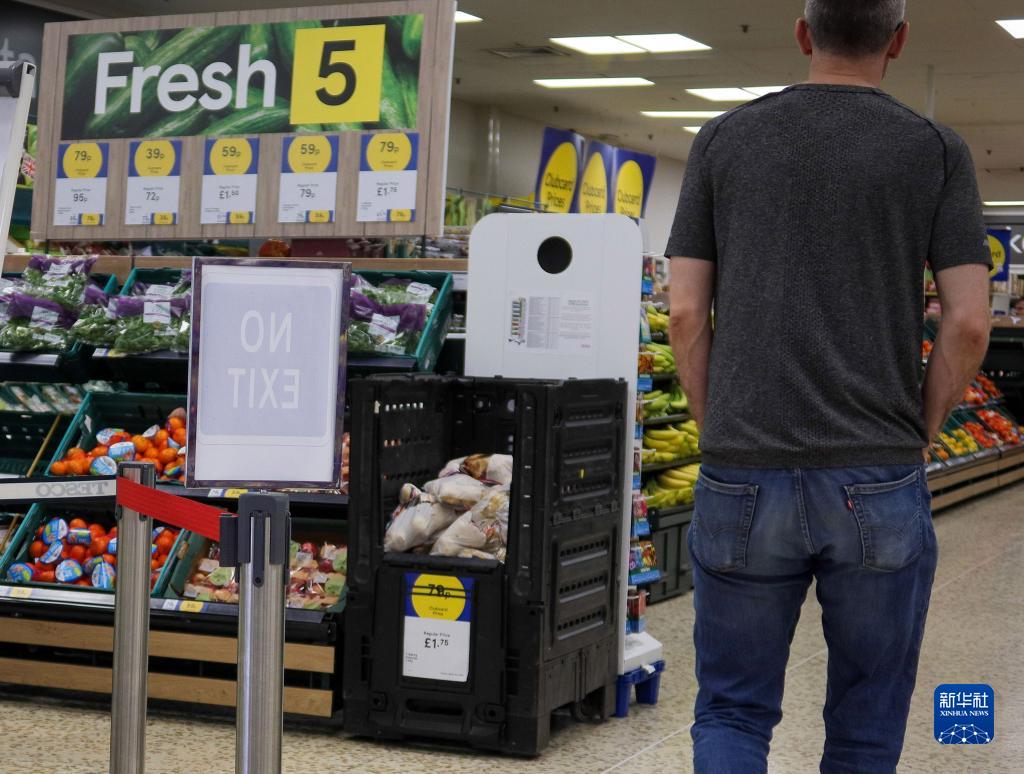 3月23日,一名男子在英国贝辛斯托克的一家超市购物。英国今年2月消费者价格指数(CPI)同比上涨6.2%