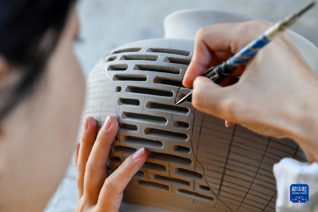 3月23日,在山西省阳城县沙坡村,乔琳在制作珐华。新华社记者 曹阳 摄