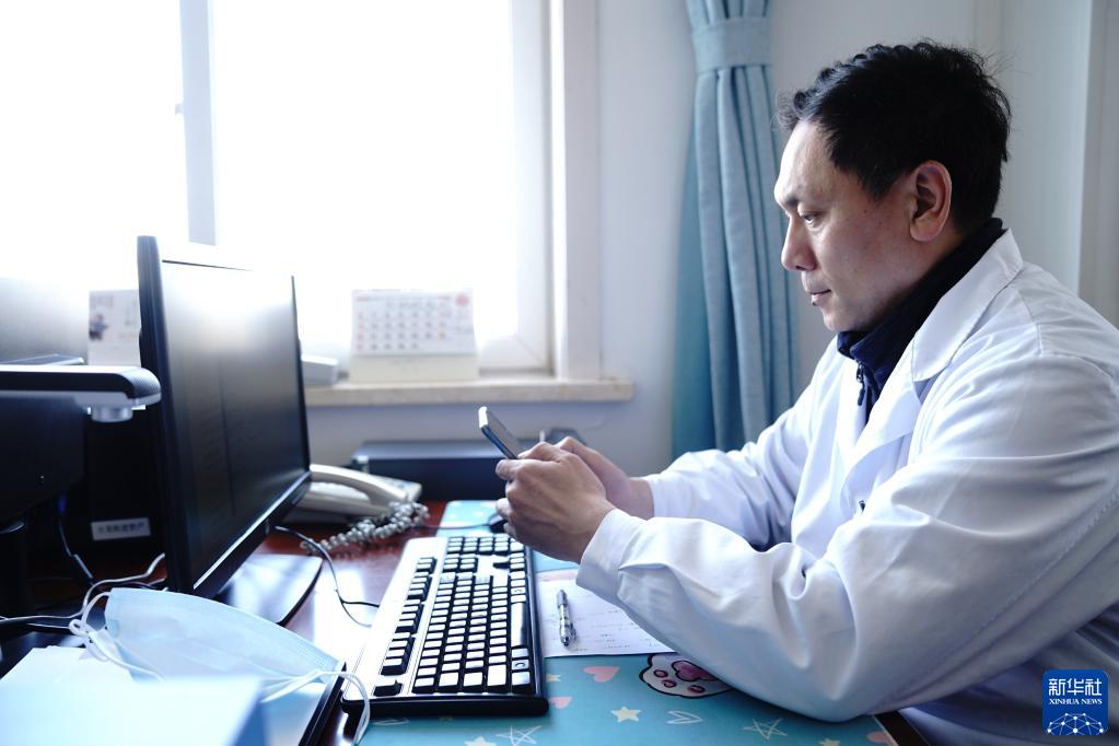 3月24日,上海闵行区古美社区卫生服务中心家庭医生黄鹏宇在办公室联系工作。