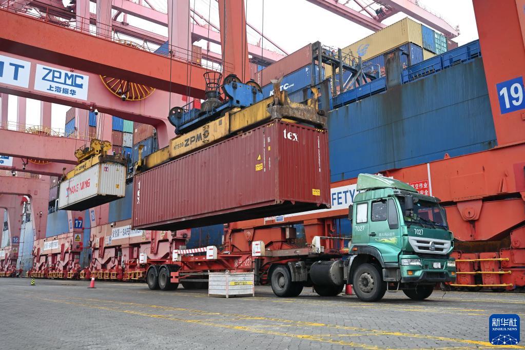 这是3月24日拍摄的厦门海天码头装卸作业现场。新华社记者 林善传 摄
