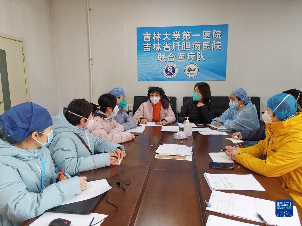 新冠肺炎救治儿科治疗专区医护团队开会讨论患者病情(3月21日摄)。