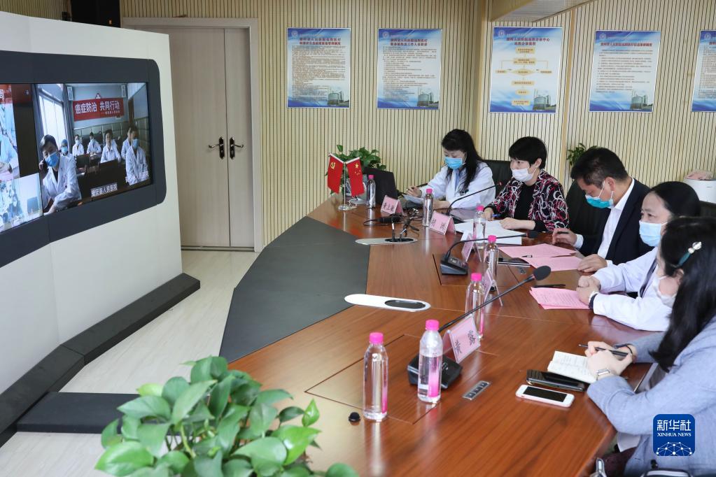 专家团队在贵州省人民医院远程会诊中心与全省34家医联体医院进行“疫情之下,共话抗癌防癌”的讨论(2020年4月16日摄)。