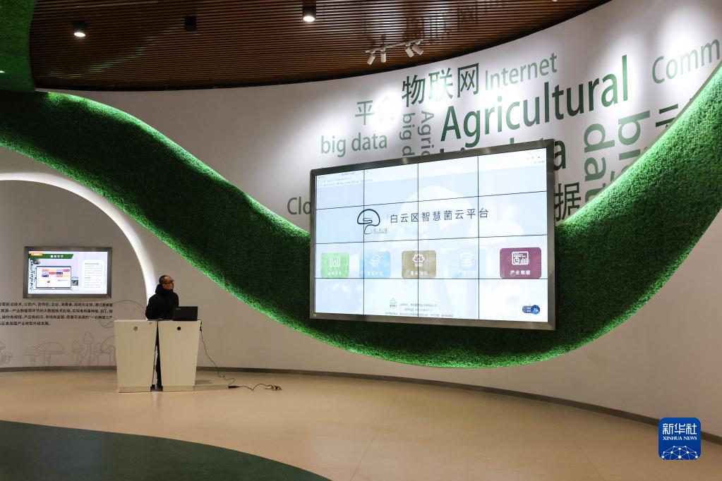 工作人员在贵州菌菇博物馆内使用“智慧菌云平台”查看菌菇资料(2月14日摄)。