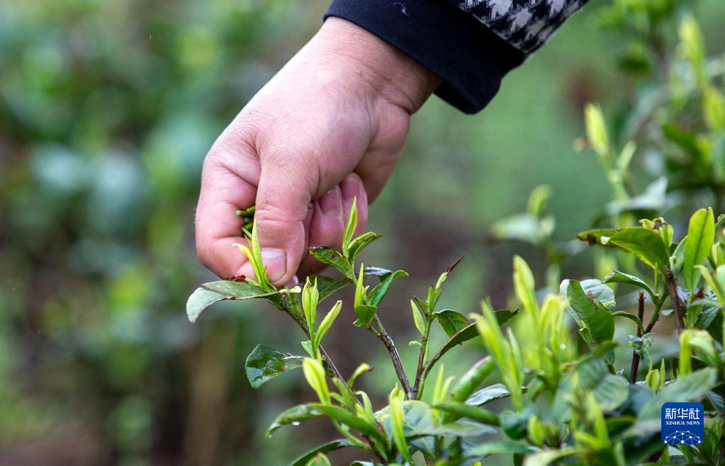 3月26日,茶农在贵州省毕节市百里杜鹃管理区一茶园采茶。