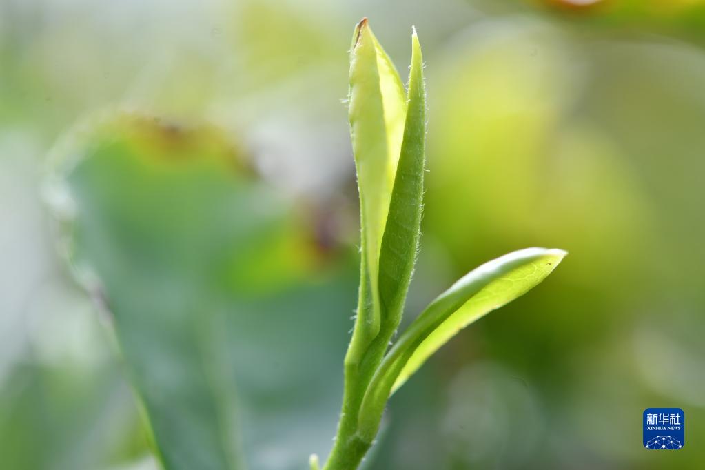 这是3月26日在湖北省襄阳市保康县城关镇罗仕沟村拍摄的新茶嫩叶。