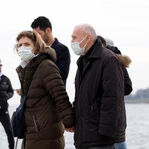 3月27日,人们在土耳其伊斯坦布尔的博斯普鲁斯海峡边行走。