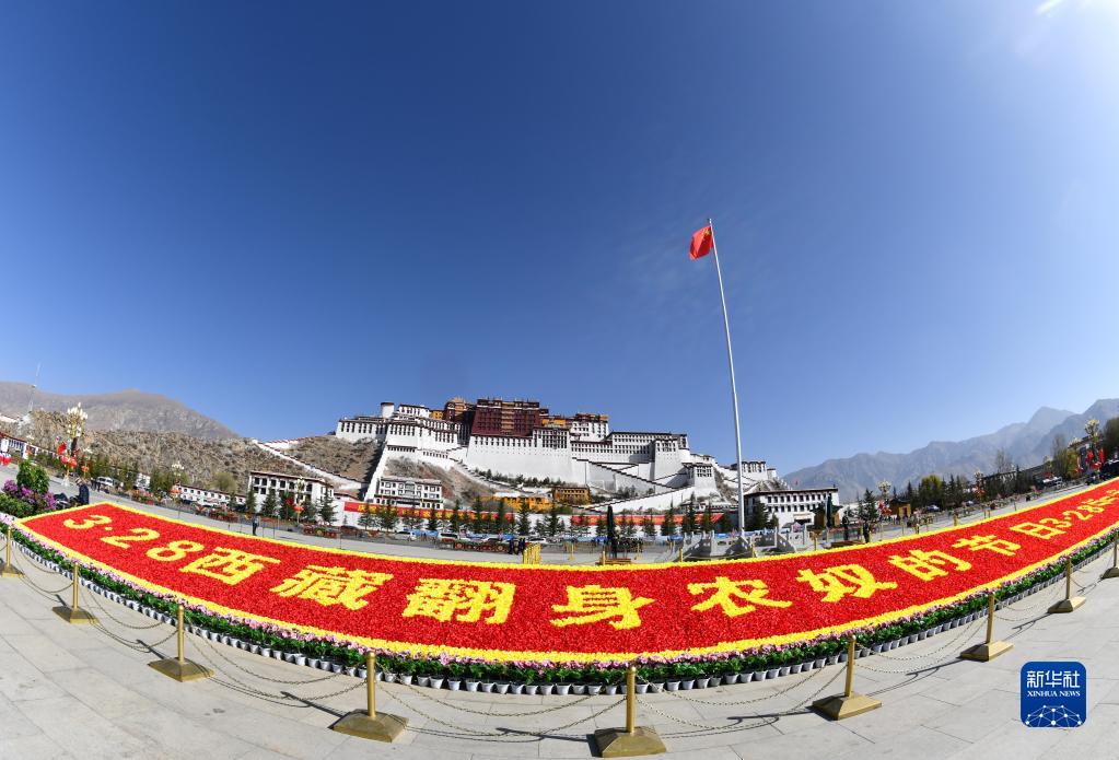 3月28日,布达拉宫广场举行升国旗仪式,庆祝西藏百万农奴解放纪念日。