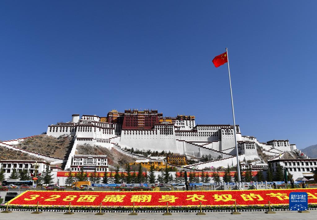 3月28日,布达拉宫广场举行升国旗仪式,庆祝西藏百万农奴解放纪念日。