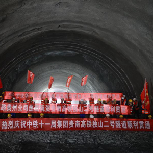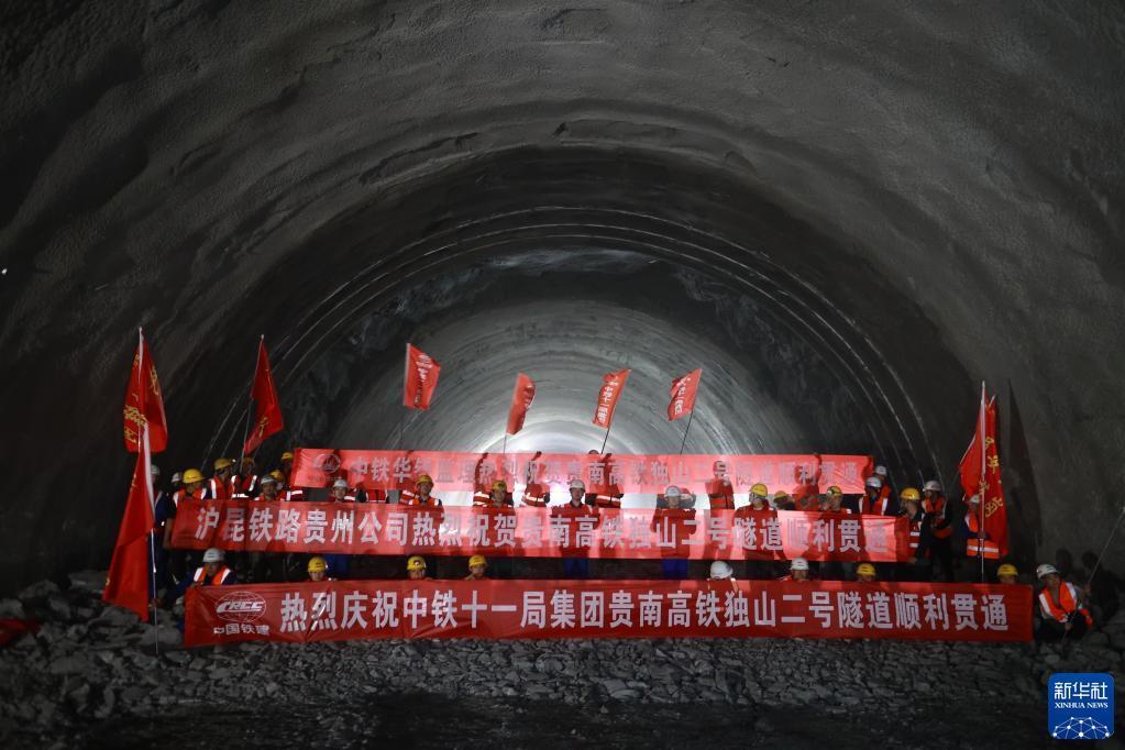 当日,由中铁十一局承建的贵南高铁独山二号隧道贯通,该隧道全长10437米,它的贯通为后续无砟轨道施工奠定基础。贵南高铁设计时速350公里,是我国“八纵八横”高速铁路主通道包头至海口通道的重要组成部分。
