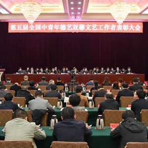 3月28日拍摄的第五届全国中青年德艺双馨文艺工作者表彰大会现场。