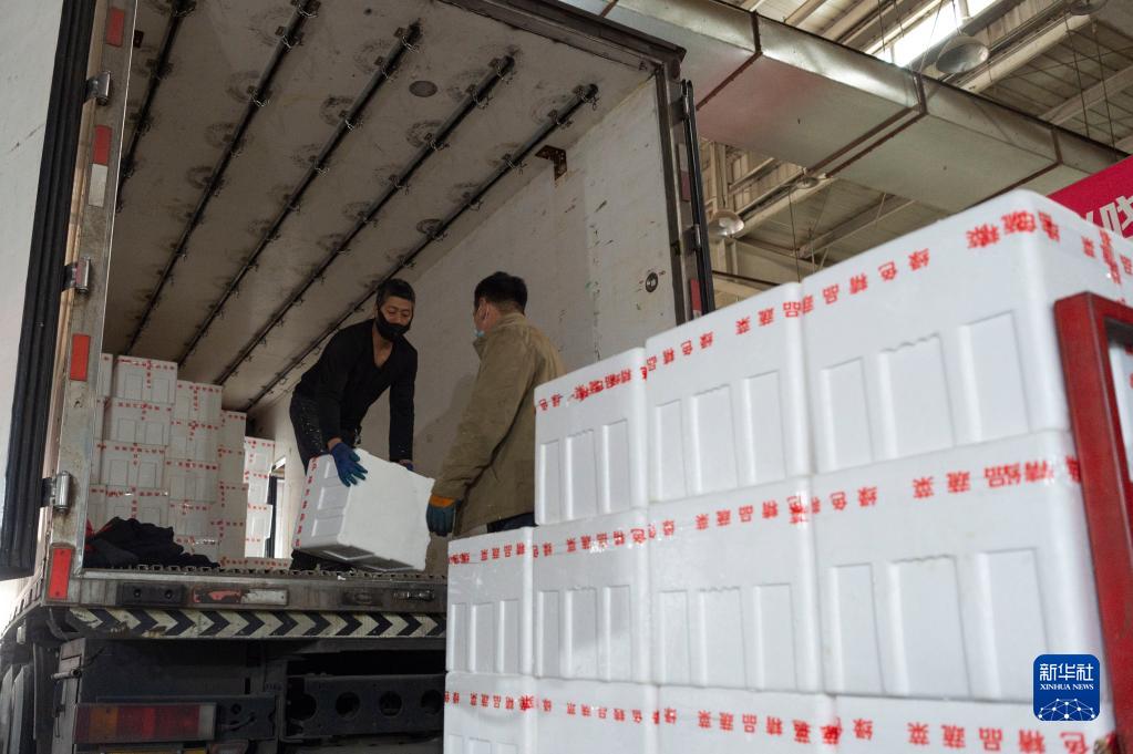 3月29日,在哈尔滨市松北区润恒国际食品交易中心蔬菜区,工作人员从货车上卸货。