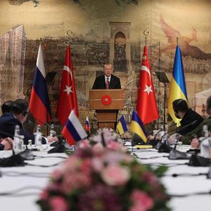 3月29日,俄罗斯和乌克兰谈判代表在土耳其伊斯坦布尔多尔玛巴赫切宫总统府开启新一轮谈判。土总统埃尔多安在和谈开始前会见了双方代表并表示愿促成俄乌总统在土会面。