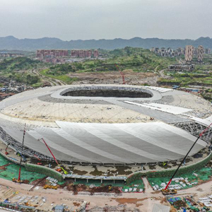 目前,由中建八局承建的重庆龙兴足球场进入金属屋面及幕墙装饰装修施工收尾阶段。其中,金属幕墙安装工作已完成80%,装饰装修施工已完成70%。