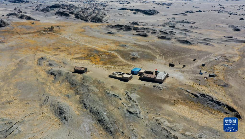 这是尼玛老人位于戈壁深处的家(无人机照片,2020年10月14日摄)。