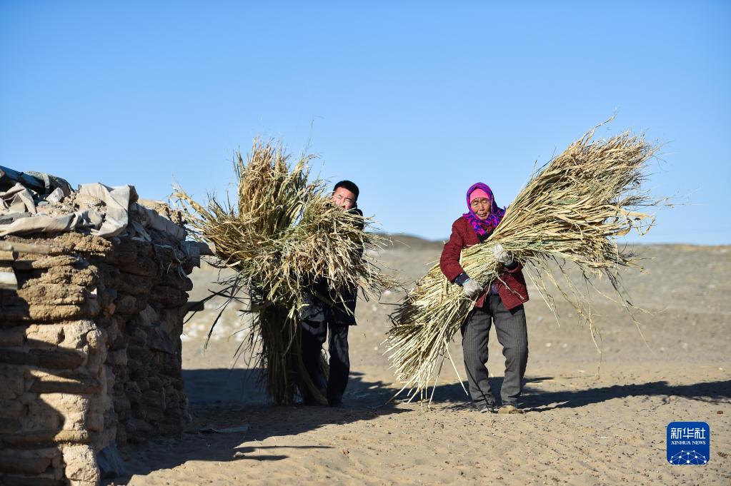 2021年1月7日,边境派出所民警帮助尼玛老人(右)搬草料。