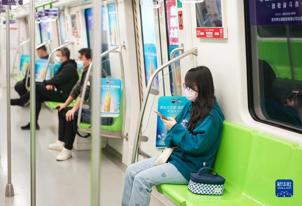 3月30日,乘客在从江宁区发出的地铁3号线列车上。
