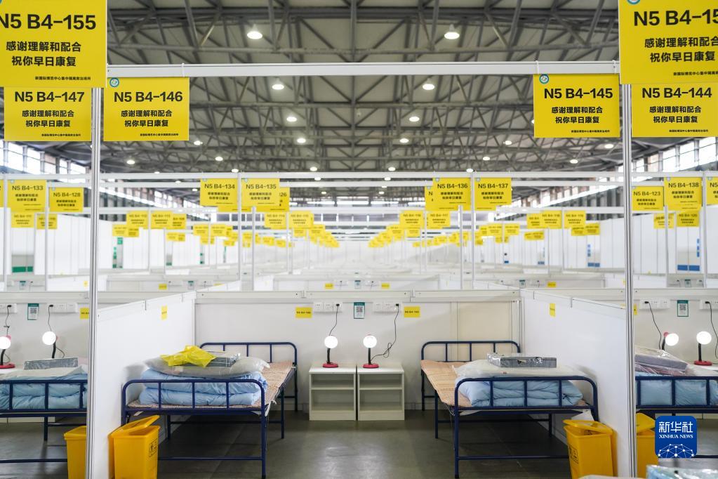 近日上海确诊病例和无症状感染者增加。位于上海浦东新区的新国际博览中心正紧张施工,将成为上海又一家收治轻症和无症状感染者的集中隔离点,设计床位超过15000张。