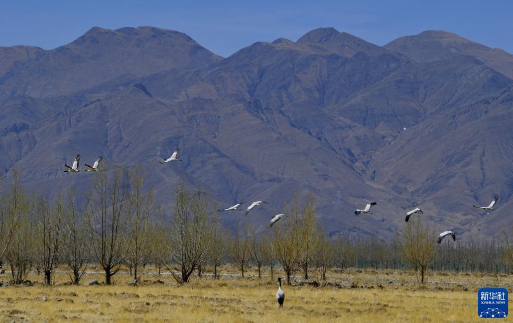近期,众多黑颈鹤活跃在西藏自治区日喀则市南木林县境内。南木林县位于雅鲁藏布江北岸,是雅江中游河谷黑颈鹤国家级自然保护区的核心区域。