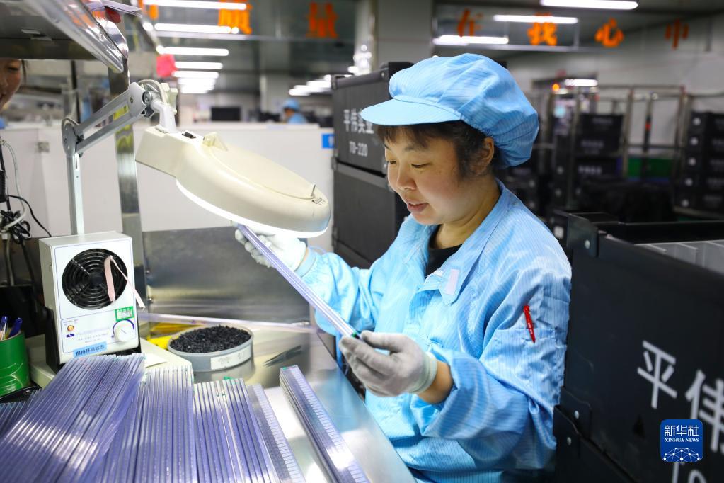 3月30日,在重庆市梁平区一家集成电路企业车间,工人在检验产品质量。