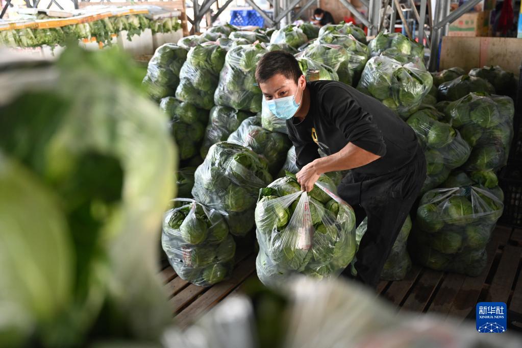 自本轮疫情发生以来,福建省晋江市全力保障居民生鲜蔬菜正常供应,稳定物价。在晋江市最大的蔬菜批发市场——禾恒蔬菜批发市场,目前每日蔬菜交易量保持在1600吨左右,蔬菜品种达到100多种。