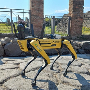 3月22日,机器狗“点点”在意大利庞贝古城工作(手机照片)。