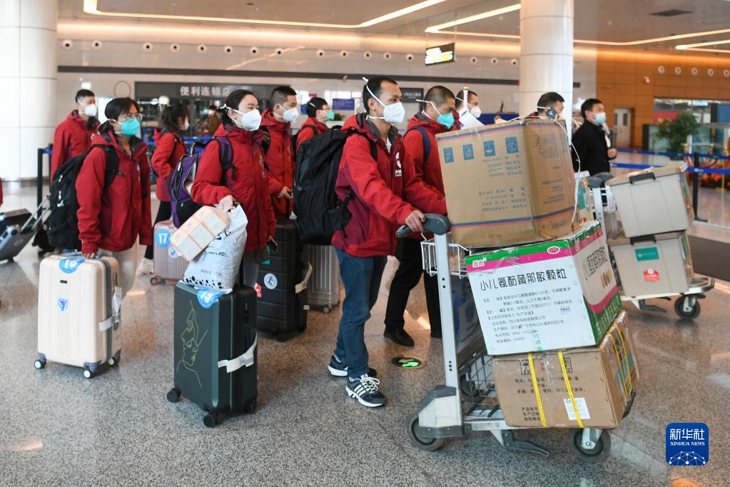 3月31日,四川省第二批援吉医疗队医护人员走出长春龙嘉机场。