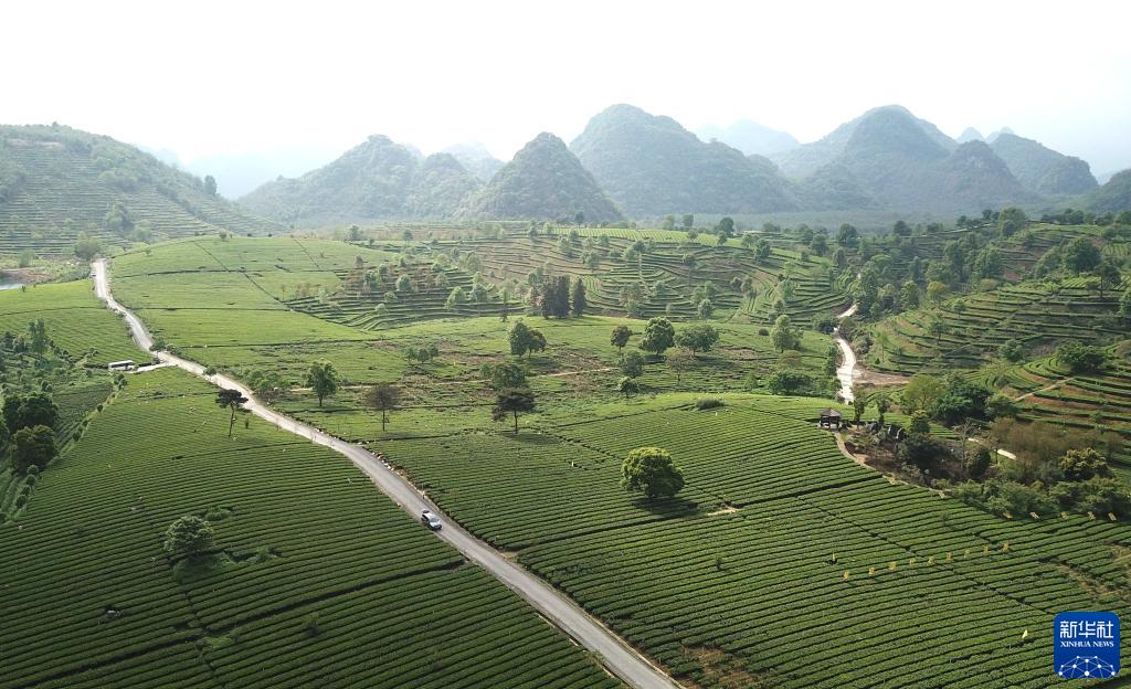 这是3月31日拍摄的英德市的茶园(无人机照片)。