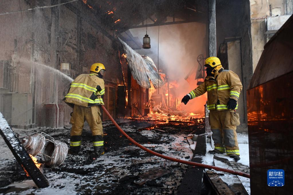 3月31日,消防员在科威特首都科威特城的穆巴拉克市场灭火。
