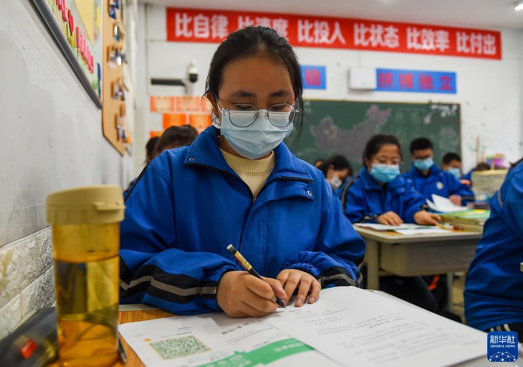 4月1日,呼和浩特市铁路第二中学高三年级学生填写健康登记表。