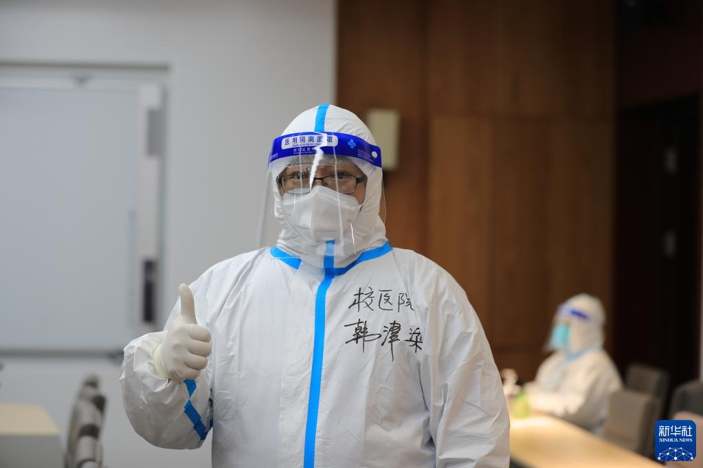 40岁的韩津梁,是吉林大学校医院放射线科医生。长春遭遇本轮疫情以来,他已连续两周坚守在校内核酸检测岗位,为疫情防控贡献一份心力。