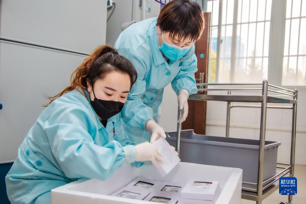 3月20日,滁州市中心血站工作人员在准备驰援上海的近33万毫升血液。