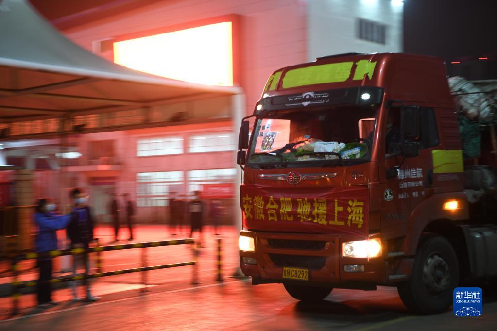 3月31日晚,满载蔬菜的货车从合肥百大周谷堆物流园出发,准备驶往上海。