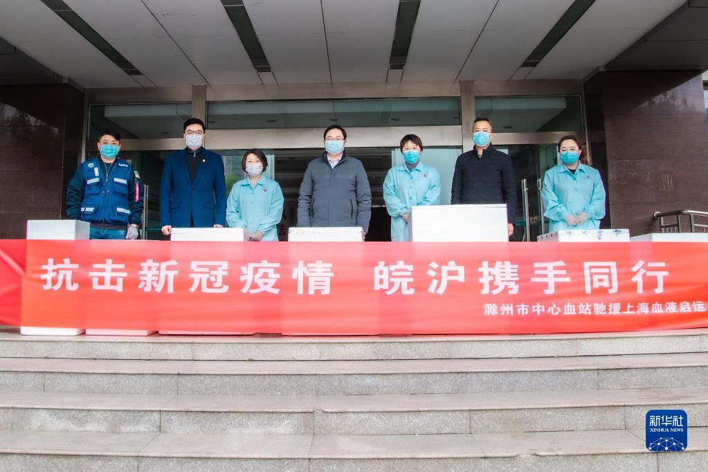 3月20日,滁州市中心血站驰援近33万毫升血液缓解上海疫情防控期间临床用血紧张局面。这是启运仪式。