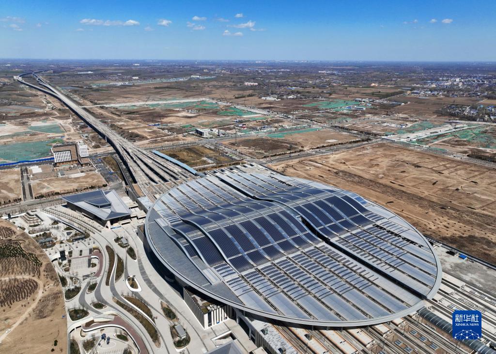 这是3月31日拍摄的雄安高铁站(无人机照片)。