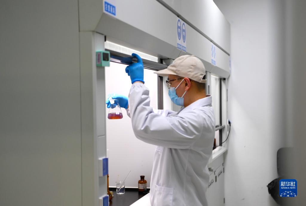3月15日,卫龙研发实验室工作人员进行食品检测。