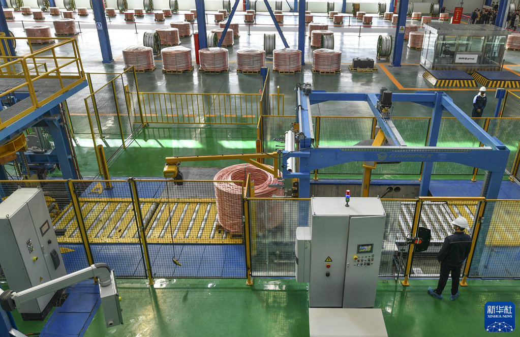 4月1日,正威新疆新材料产业园年产25万吨低氧光亮铜杆连铸连轧生产线在乌鲁木齐经济技术开发区(头屯河区)建成投产。这条生产线是新疆首条从德国西马克引进的连铸连轧生产线,设备体量大、精度高,每小时产能达35吨,项目全面达产后,年产值约200亿元。