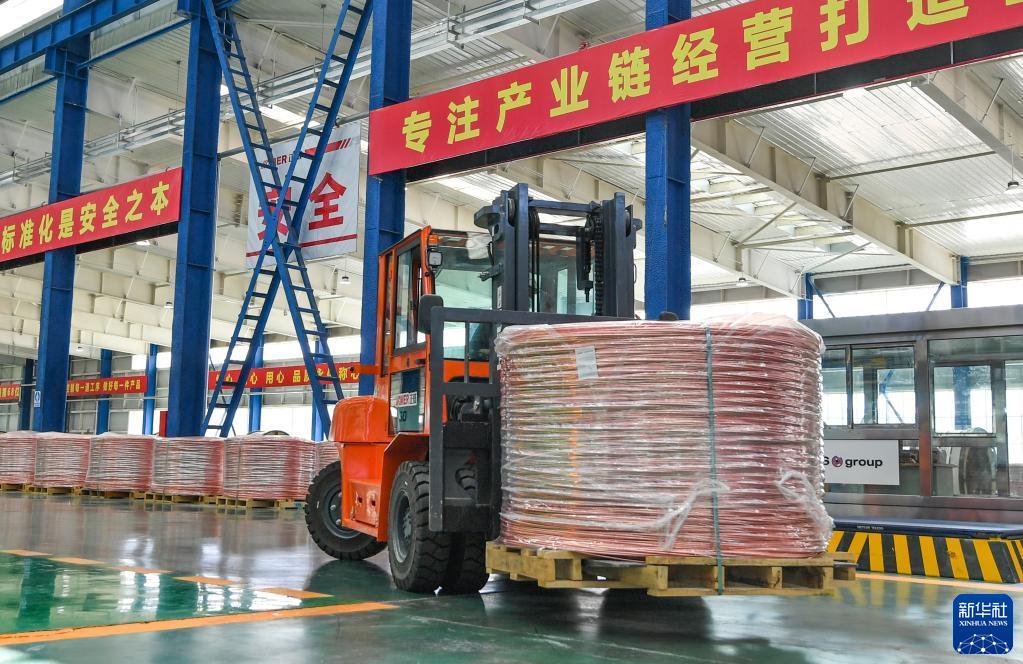 4月1日,正威新疆新材料产业园年产25万吨低氧光亮铜杆连铸连轧生产线在乌鲁木齐经济技术开发区(头屯河区)建成投产。这条生产线是新疆首条从德国西马克引进的连铸连轧生产线,设备体量大、精度高,每小时产能达35吨,项目全面达产后,年产值约200亿元。