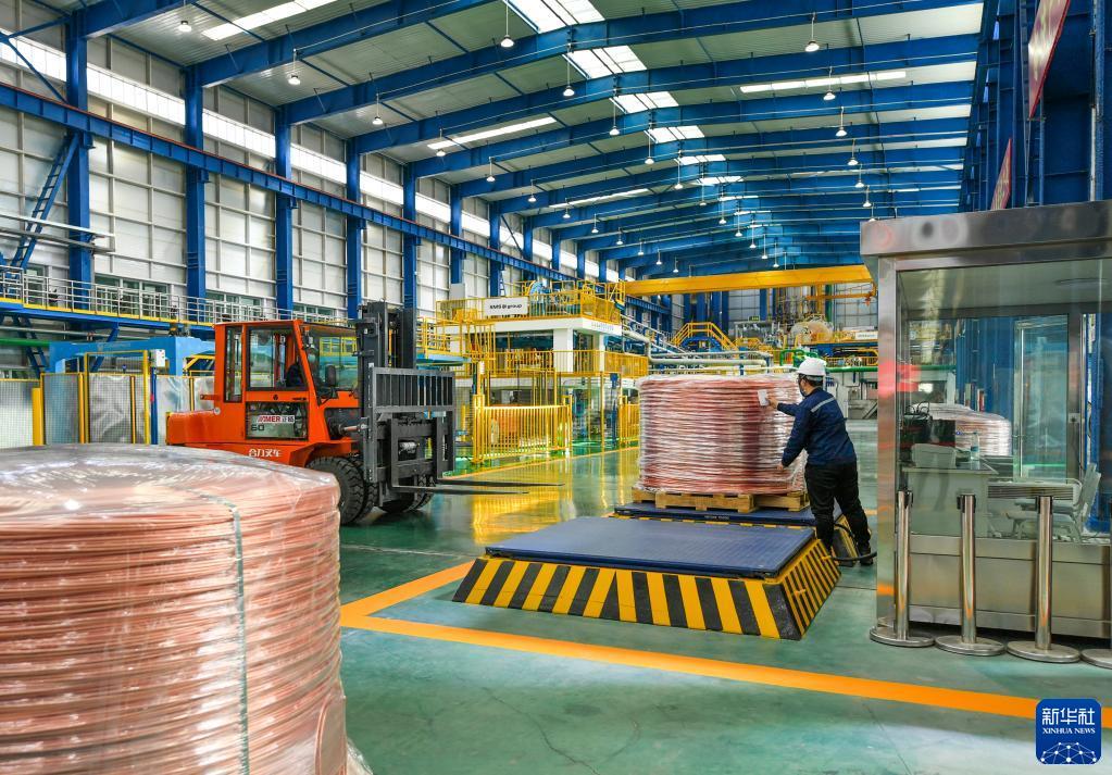 4月1日,正威新疆新材料产业园年产25万吨低氧光亮铜杆连铸连轧生产线在乌鲁木齐经济技术开发区(头屯河区)建成投产。这条生产线是新疆首条从德国西马克引进的连铸连轧生产线,设备体量大、精度高,每小时产能达35吨,项目全面达产后,年产值约200亿元。