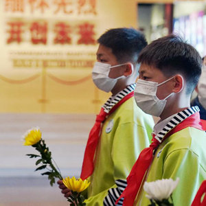 4月2日,参加活动的学生在中国人民抗日战争纪念馆向抗战英烈献花。