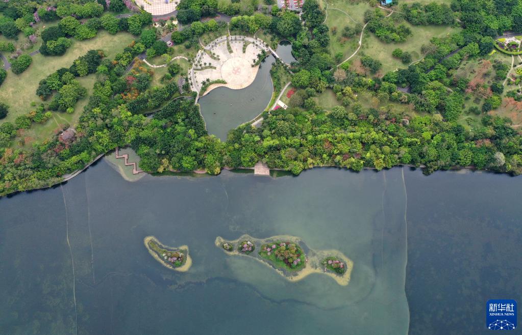 这是4月2日拍摄的广西南宁市南湖公园春色(无人机照片)。
