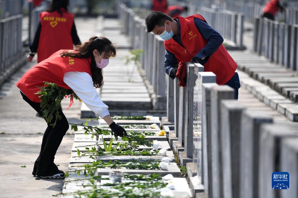 清明期间,根据疫情防控需要,安徽省合肥市一些陵园、公墓等场所暂停或限流开展现场祭扫活动,当地民政部门组织志愿者通过代祭扫、云祭扫等方式表达对逝者的思念。