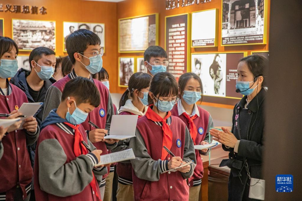 4月2日,在重庆市南岸区王朴故居,讲解员为重庆市广益中学的学生代表讲解王朴烈士事迹。